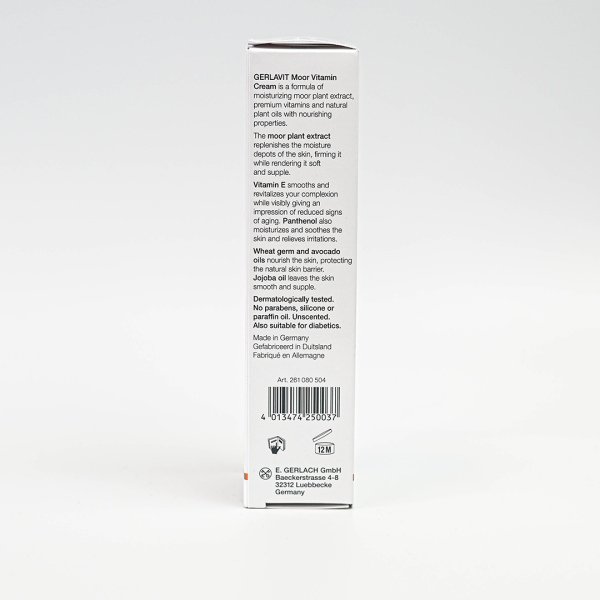 GERLAVIT Moor Vitamin Cream is a formula with nourishing properties for dry and sensitive skin. The moor plant extract fills up the moisture deposits of the skin. Vitamin E smoothes the skin helps counteract premature aging.