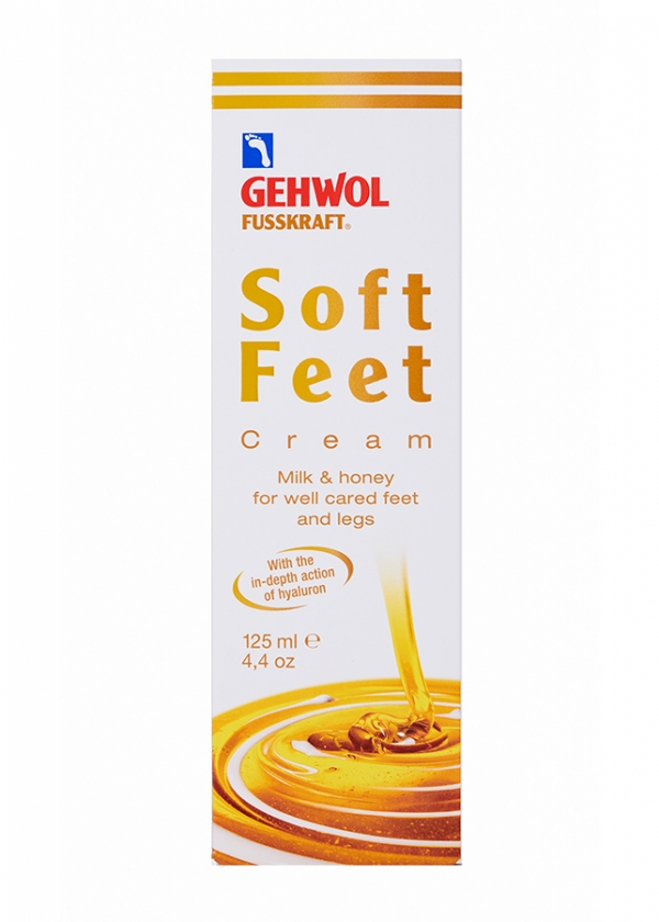 Milk peptides and honey extract make the skin noticeably silkier and visibly smoother. GEHWOL FUSSKRAFT Soft Feet Cream is a moisturizing foot and leg cream which is easily absorbed and leaves behind the feeling of silky soft skin. The pleasant, refreshing scent gives you the security of well cared feet.